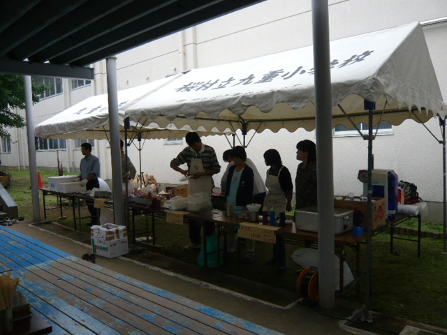 時折小雨がぱらつく天候となりましたが毎年恒例の九重小バザーが開催されました。