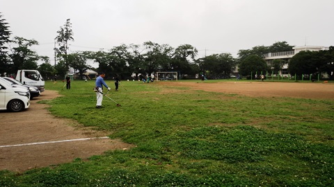 スポーツ少年団のお父さん方も多数ご協力いただき、広範囲の除草作業ができました。