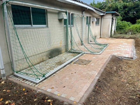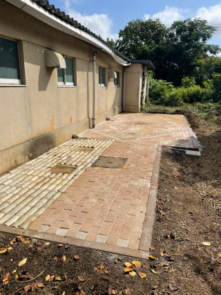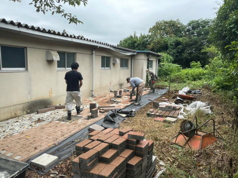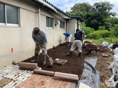 また、廃品回収実施後に有志により、プール裏を整地してインターロッキングブロックを敷き詰める作業を実施しました。