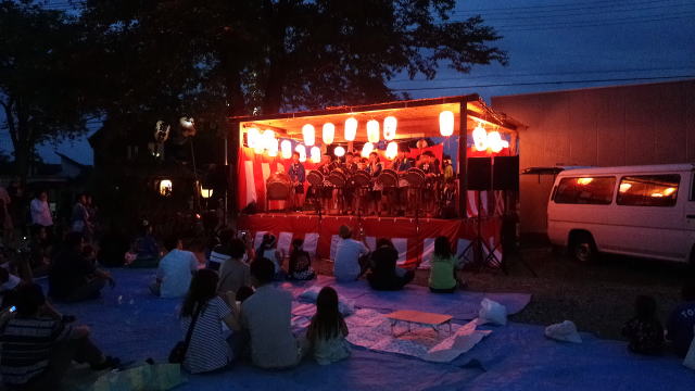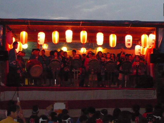 子どもたちは昼間の山車運行の疲れも見せず約3週間のお囃子練習の成果を披露しました。
