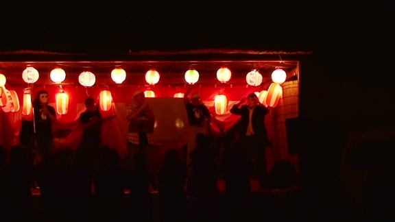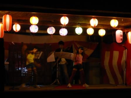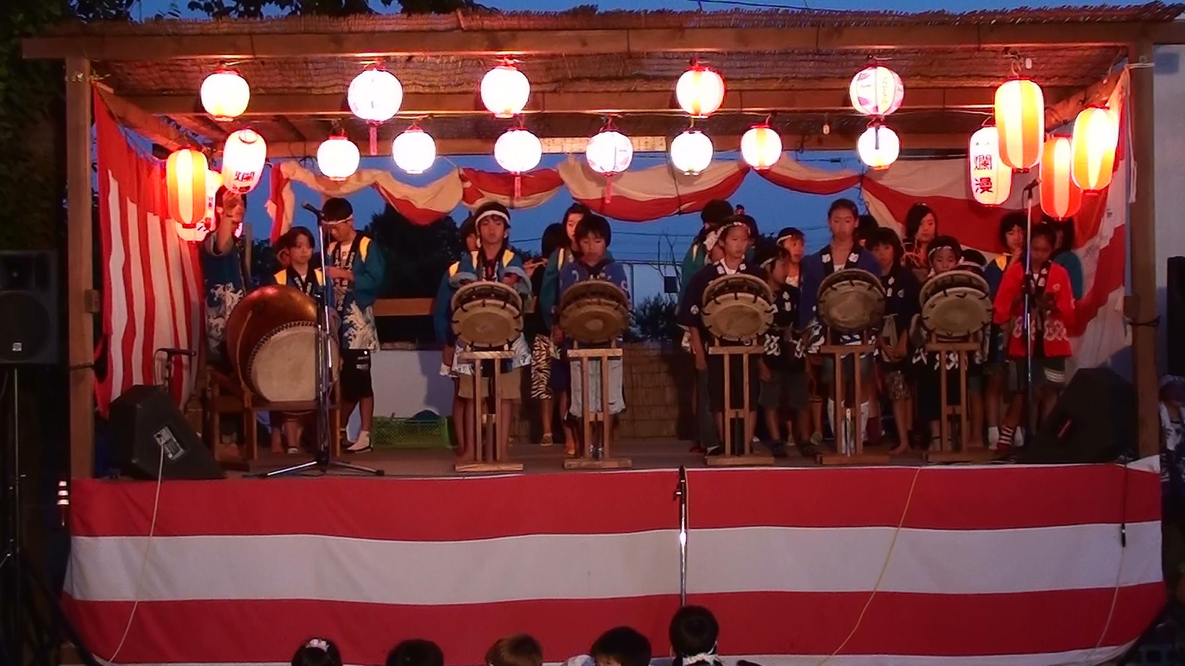 夜の演芸会では子ども会による歌や寸劇の披露、日本舞踊、おやじバンド、中学生のダンスと