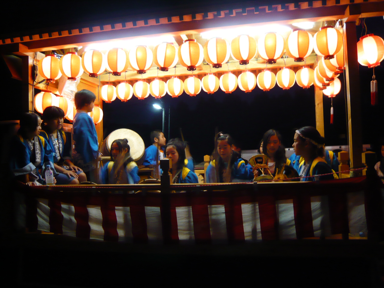今年は小学生の参加が少なく残念でしたが昼間の山車運行の疲れも見せずお囃子練習の